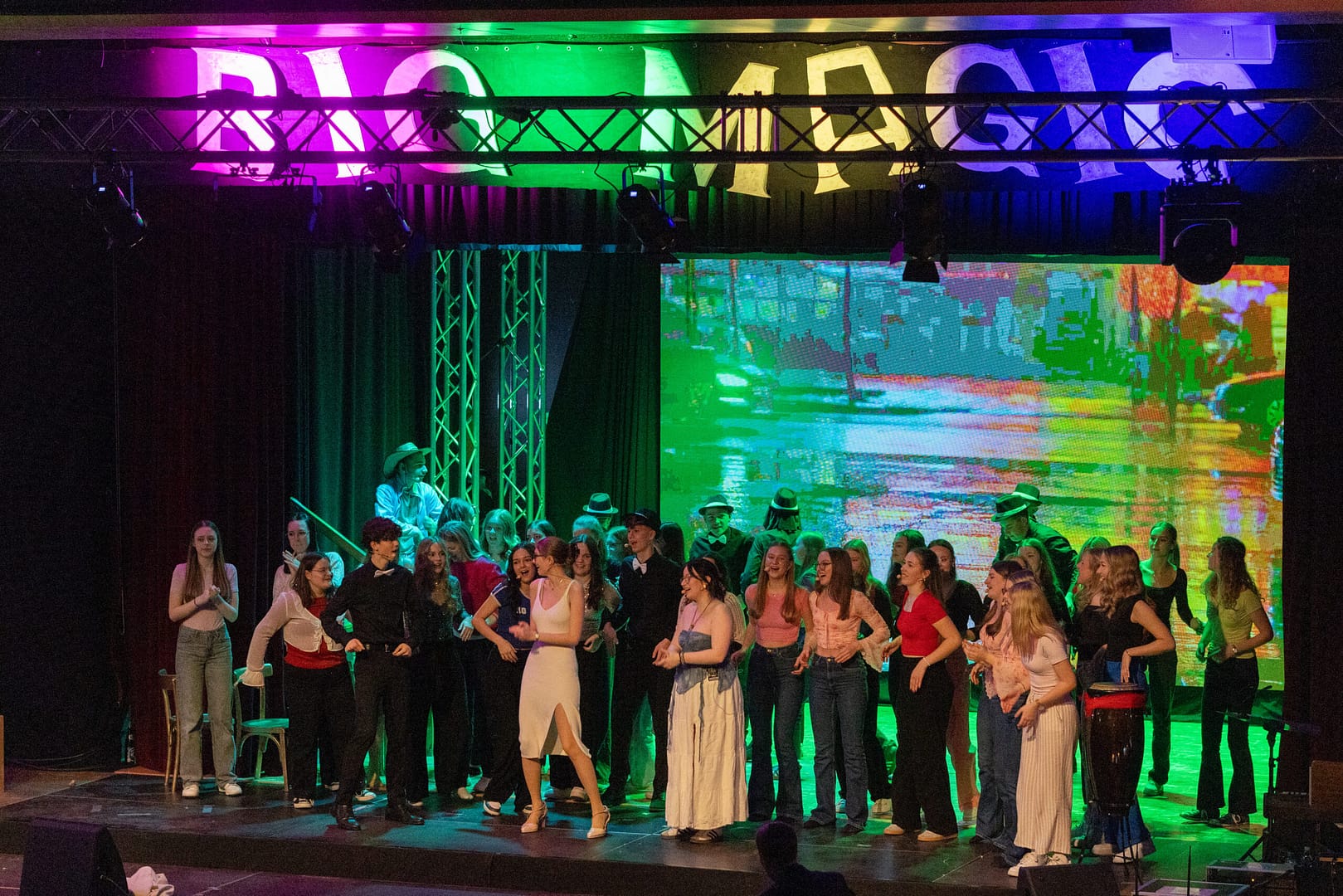 Eine Gemeinde an der Feistritz verändert sich auf fantastische Weise. Nachdem ein mysteriöser glitzernder Komet irgendwo im Ort einschlägt, werden Einwohner*innen verzaubert und drücken sich immer wieder mitten in ihrem Alltag in wunderbaren Musical-Nummern aus. Das macht erst große Laune – die ganz großen Songs werden plötzlich Realität! Das hat aber auch Nachteile – so emotional und romantisch kann man ja nicht arbeiten, lernen und funktionieren im Alltag! Der Ort wird gespalten und ein paar junge Menschen werden der „Musical-Hexerei“ bezichtigt. Irgendwer muss ja schuld sein! Vorurteile kommen auf, Menschen feinden sich an. Nun müssen ein paar junge Held*innen sich zusammenraufen, um herauszufinden, was wirklich hinter dem „Musical-Zauber“ steckt. Als Liebende getrennt werden, damit sie nicht dauernd in romantische Songs verfallen, brechen harte Zeiten im Ort an – vor allem ein junges Liebespaar leidet sehr darunter. Ein Romantik-Lockdown wird verordnet – das geht nicht lang gut. Das will niemand! Wie geht man mit großen Gefühlen um und bleibt trotzdem mit beiden Beinen fest auf der Erde? Wie geht man seinen Weg und lebt als junger Mensch in der Gesellschaft? Wie trägt man seine innere Musik, seine kreative „BIG MAGIC“ nach außen? Spätestens als der Komet in der Feistritz gefunden wird, haben die Figuren in der Geschichte sich selber und einander wesentlich besser kennengelernt – mitten in einem Reigen aus fantastischen Songs, von klassischen Evergreens bis zu modernen Hits!